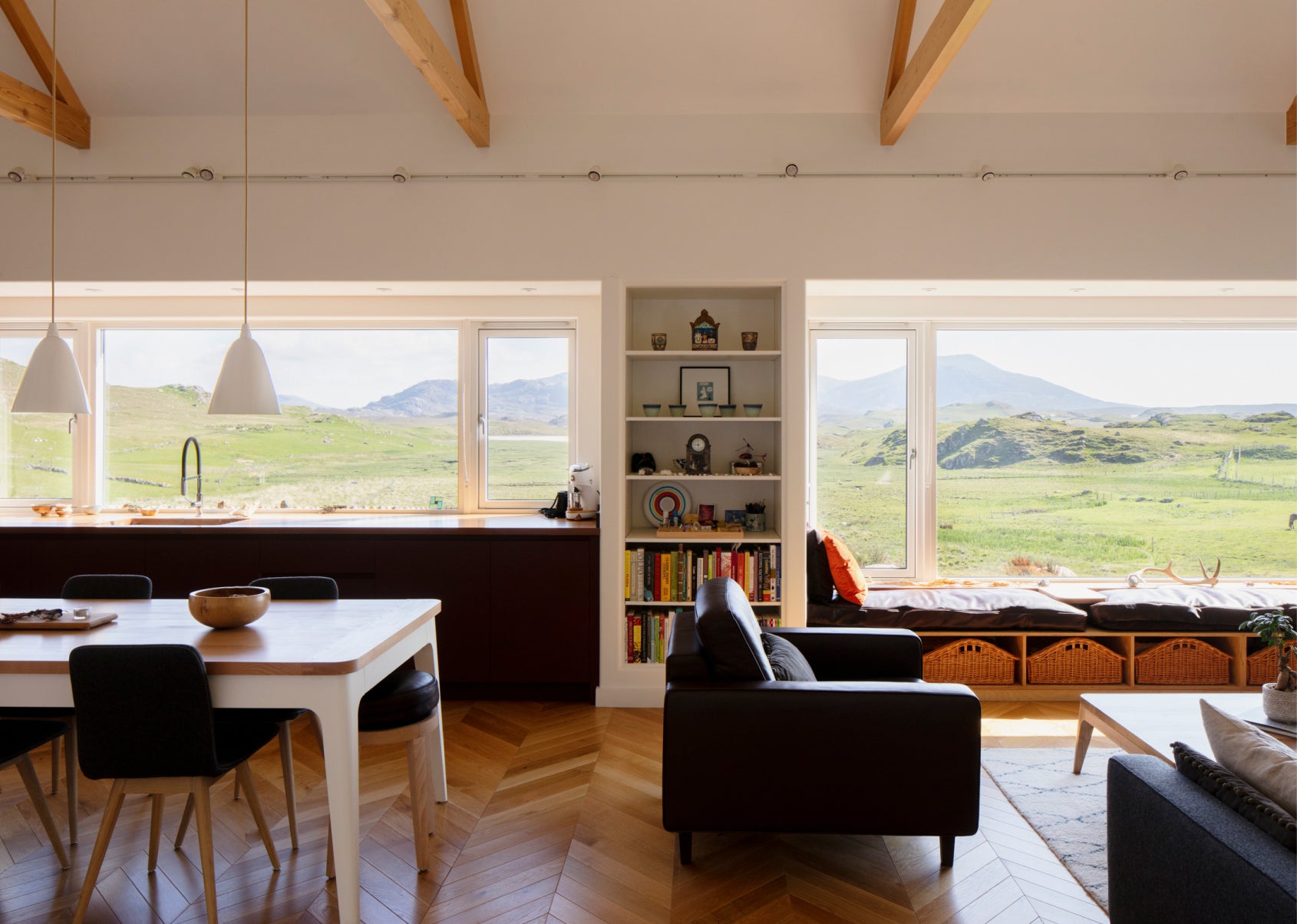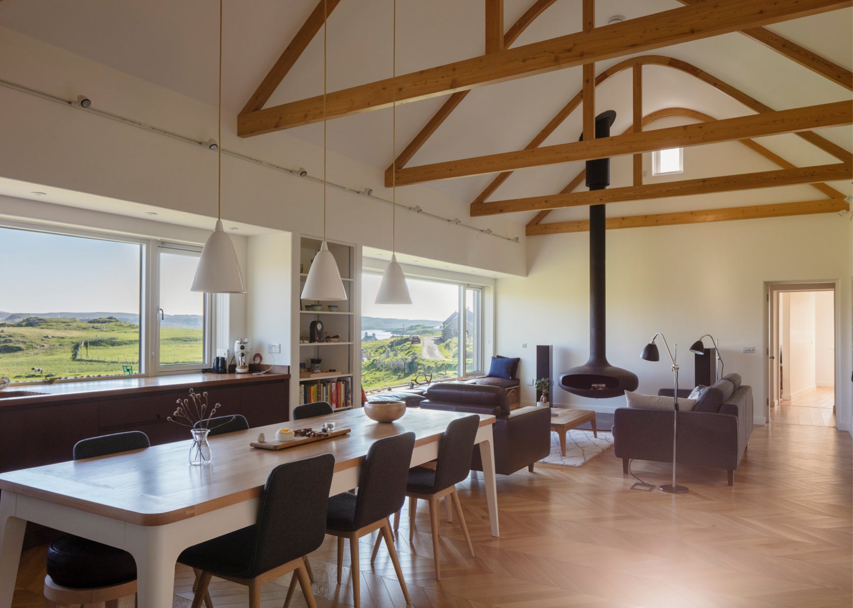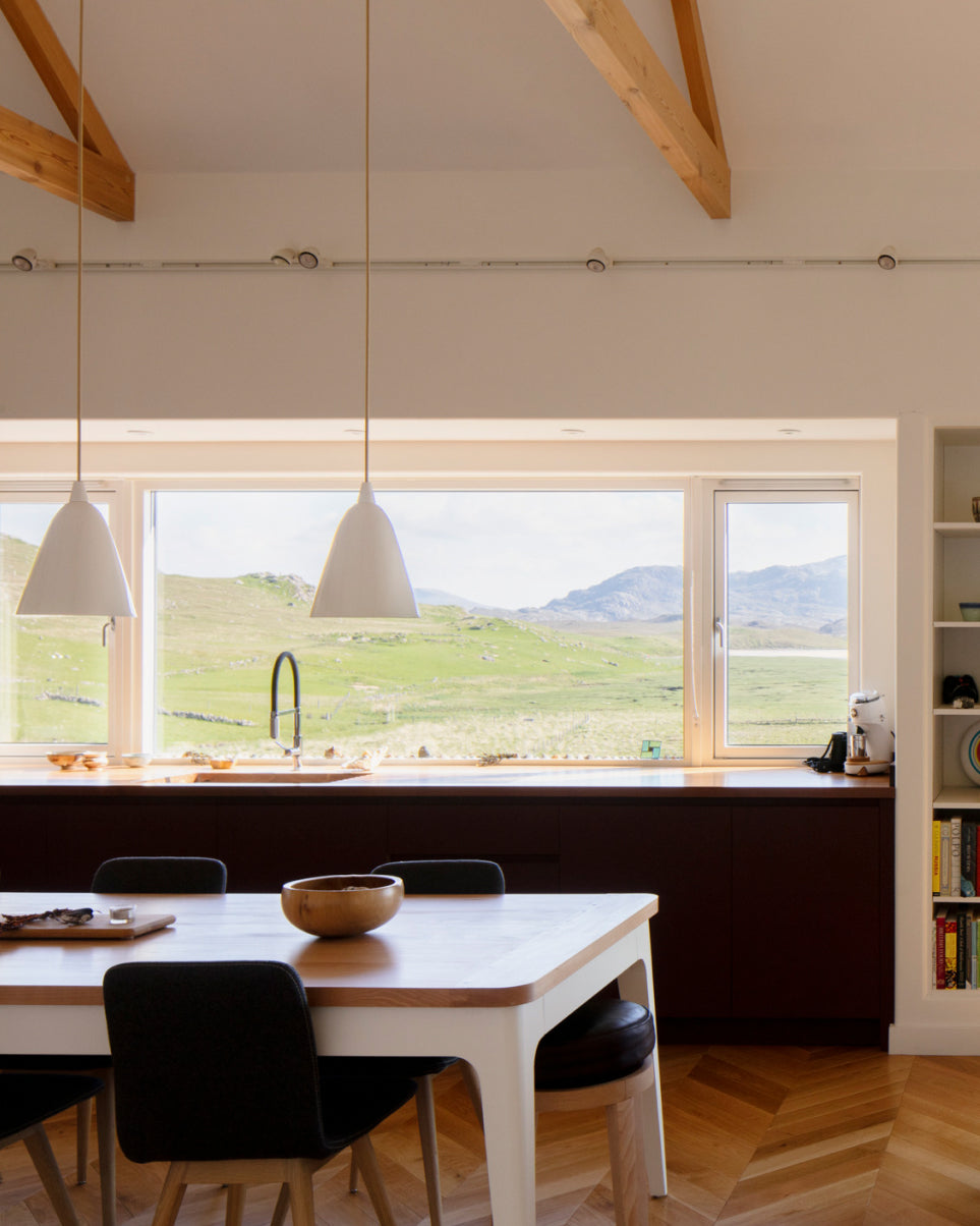 Take a look at that view! Nestled in the moors of the Isle of Lewis, this open-plan retreat exudes comfort and relaxation. Our Hector pendants blend seamlessly into the contemporary design of this beautiful home.
