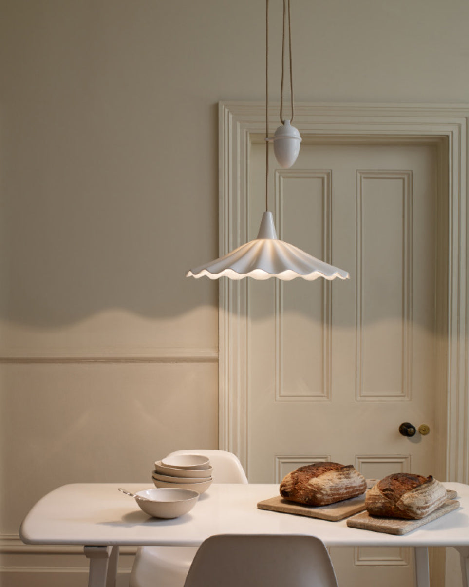 Ideally, having separate controls for different lights – like the Cobb Rise & Fall and Hector 30 Wall Light shown above – allows you to switch off bright task lights when it’s time to sit down and enjoy your meal. If your lighting is already set, consider using brighter bulbs in the cooking area and softer bulbs above your dining table for an easy transition.