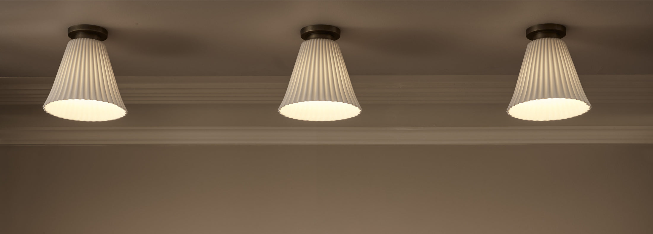 Browse beautiful ceiling lights from O.BTC and Davey Lighting. From LED spotlights through to glass ceiling lights, this British-made collection of light fittings includes simple light solutions for any indoor or outdoor space. We know good design lies in the details which is why even our most modest lights are made from quality materials, containing intricate details that tie together the interior design of any space. Use spotlights to create drama, modern ceiling lights to make spaces brighter or choose one of our industrial style ceiling lights for your bathroom to add that little extra attention to detail.