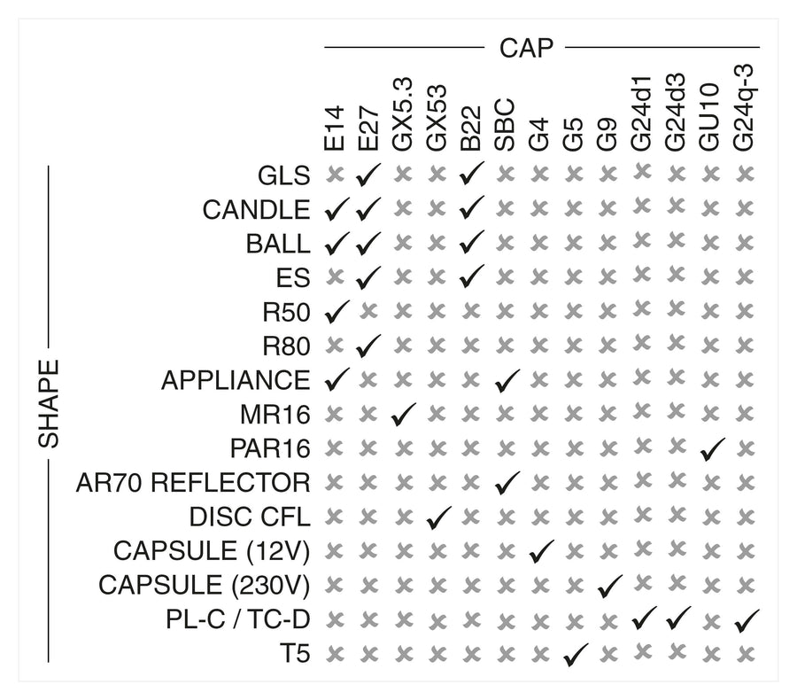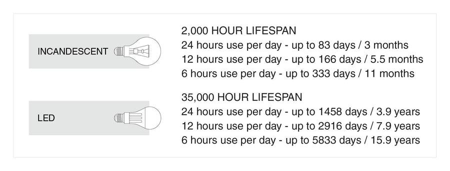 *Please note wattage figures and typical lifespans may vary between light bulb suppliers.